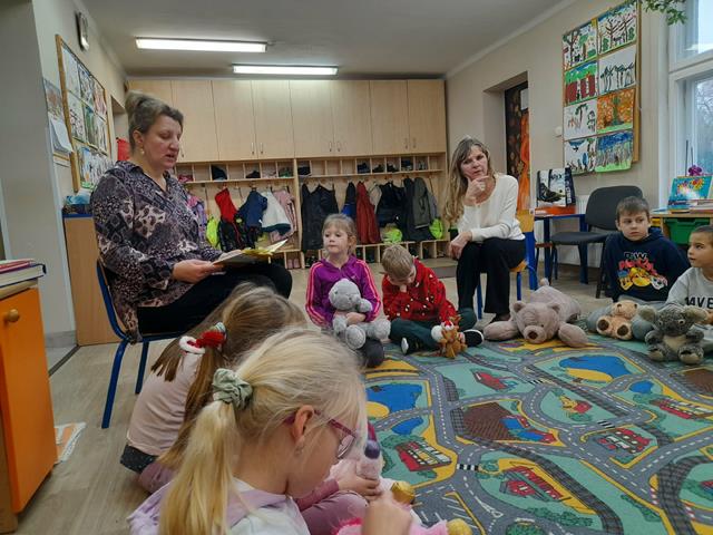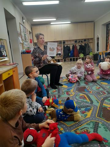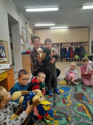 25 listopada z okazji Światowego Dnia pluszowego Misia, wybrałam się do SP nr 2 w Biskupcu. Wraz z "bibliotecznym misiem podróżnikiem", odwiedziłam grupę "0". Dzieci poznały historię pluszaka Mata, misia optymisty, podróżnika, obieżyświata, który stykał się z bogactwem i biedą. To główny bohater książki Agnieszki Suchowierskiej, pt.: "Mat i świat". odbyły się także ciekawe wspólne zabawy ruchowo-taneczne z misiami. Dzieci, pracując w grupach, ułożyły wyrazy z rozsypanek literowych, z których powstało zdanie podsumowujące ciekawe zajęcia: "Maskotka - pluszowy miś - to przyjaciel dzieci." Dziękuję dzieciom i paniom, za miłe przyjęcie i sympatyczne spotkanie.