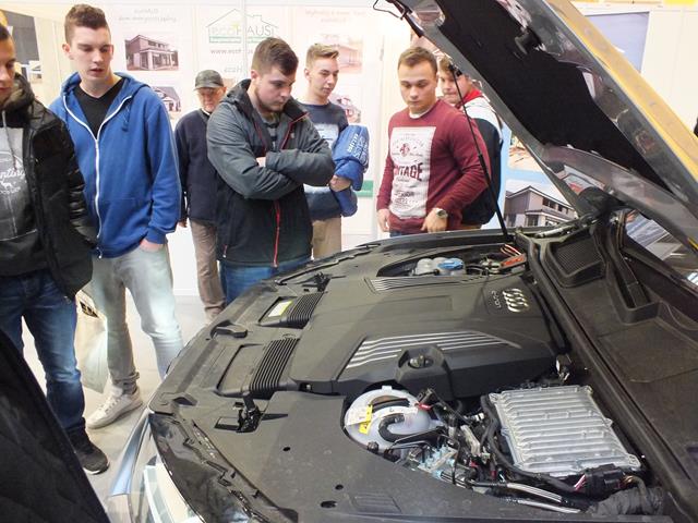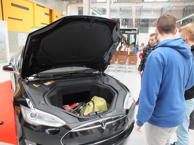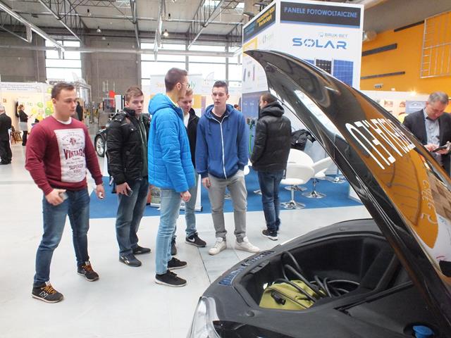 W piątek 25 listopada uczniowie z klas III i IV Technikum o specjalności urządzenia i systemy energetyki odnawialnej zwiedzali stoiska na targach energetyki odnawialnej. W porównaniu z ubiegłym rokiem tym razem było więcej atrakcji, kto w wieku 18-19 lat, świeży kierowca, nie zainteresuje się samochodem górnej półki, do którego można wsiąść, wszystkiego dotknąć, zrobić sobie zdjęcie, zajrzeć pod maskę. Tym razem była niezła gratka, Audi Q7 e-tron (hybryda, diesel + silnik elektryczny o momencie obrotowym 600 Nm), oraz 2 samochody Tesla 85D i 85D+. Tesle to pojazdy z silnikiem elektrycznym o mocy ok 470 KM (do kupienia za ~mniej więcej 400 tyś złotych. I to właśnie te liczby elektryzowały i wywoływały uśmiech. Były też inne pojazdy elektryczne, terenówka czy też rower oraz cała masa stoisk z tym co dla technika tej specjalności jest chlebem powszednim. Tym razem zajęcia miały inną, można powiedzieć przedświąteczną formę.