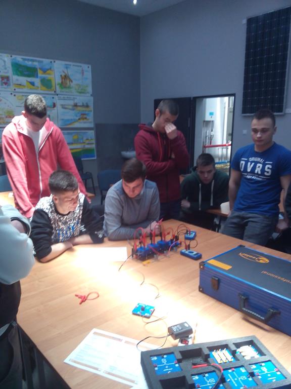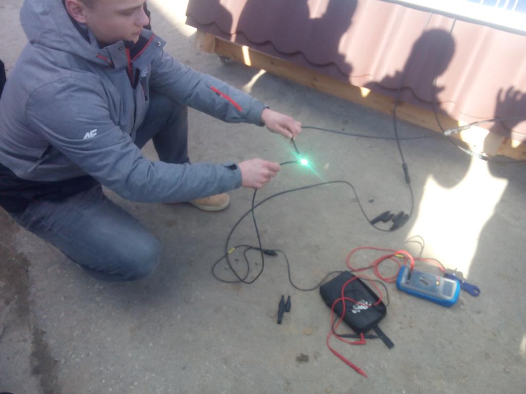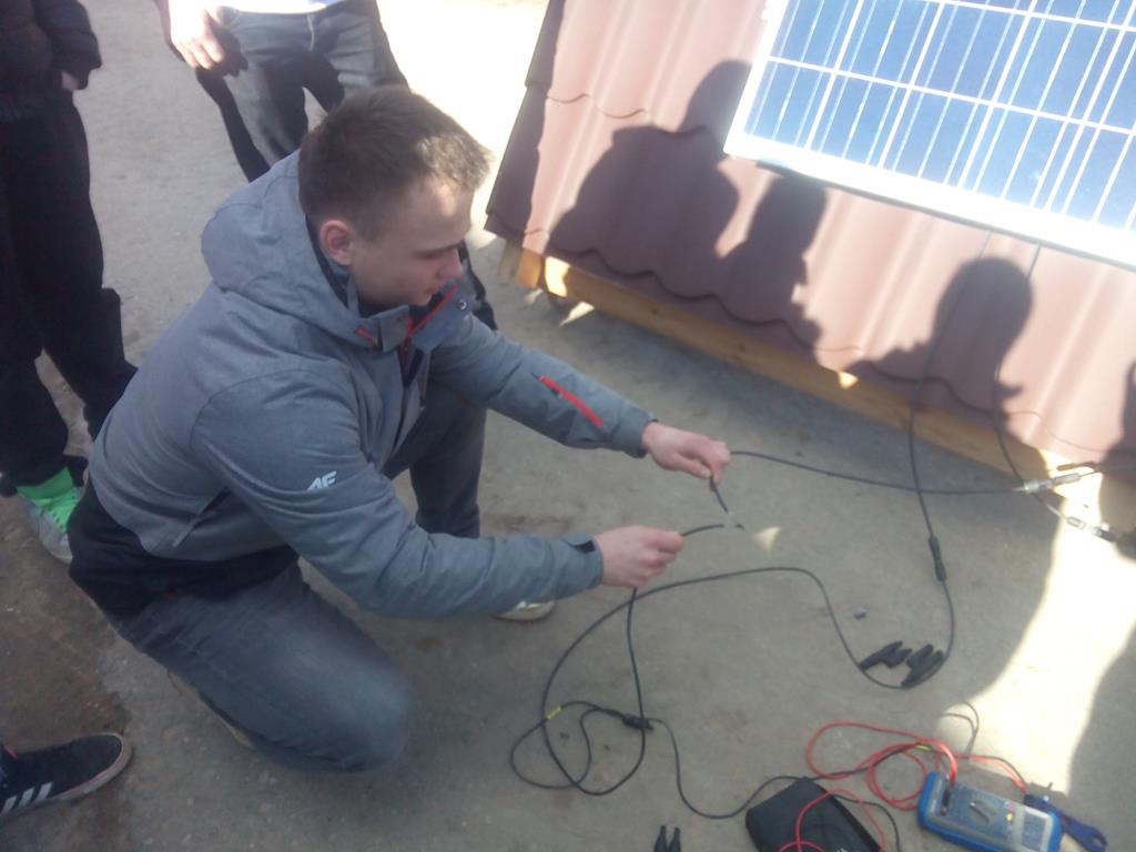 W trakcie zajęć uczniowie mogli samodzielnie zastosować poznaną w szkole wiedzę w praktyce. Dokonali montażu ogniwa fotowoltaicznego na fragmencie poszycia dachowego, a następnie pomiaru parametrów jego wydajności. Zaobserwowali też zjawisko łuku elektrycznego.