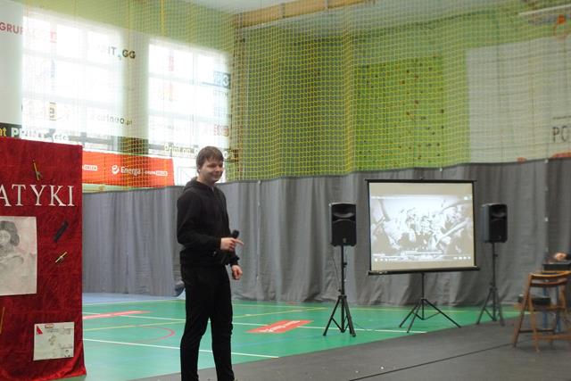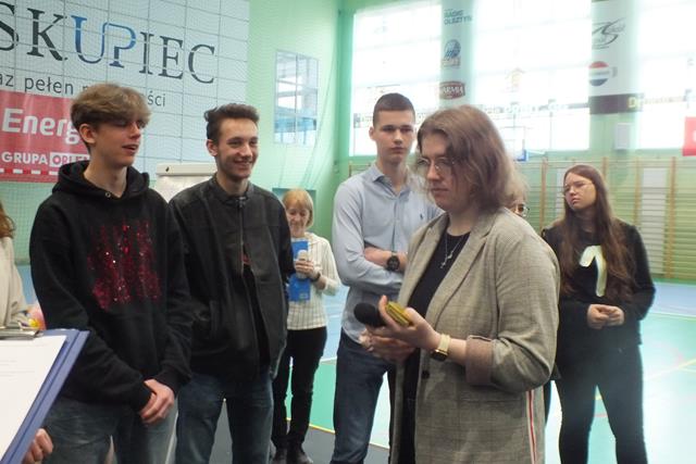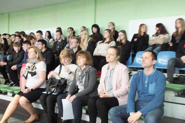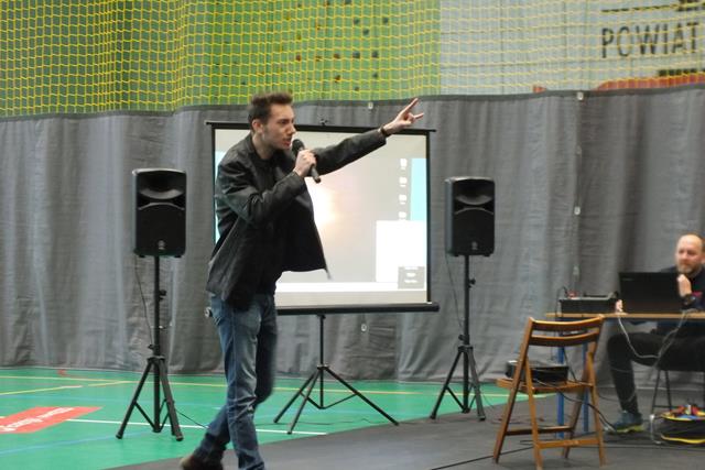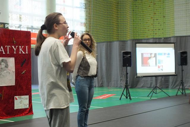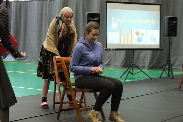 Nastrój matematyczny i wesołość udzieliła się także widowni, którą stanowili uczniowie straszych roczników. Spontanicznie swój talent przedstawił uczeń klasy 3Tb - Konrad Lech, który wykonał nieoczekiwanie autorski utwór aranżowany a'vista (bez przygotowania) w formie free style. "Ja i tak zdam - bo ja prawdziwy talent mam" .