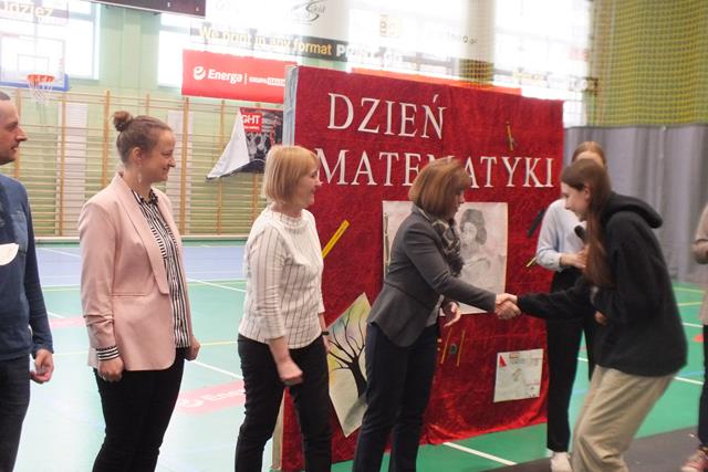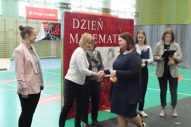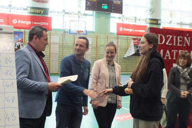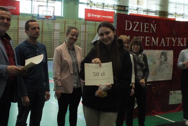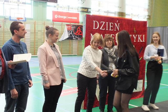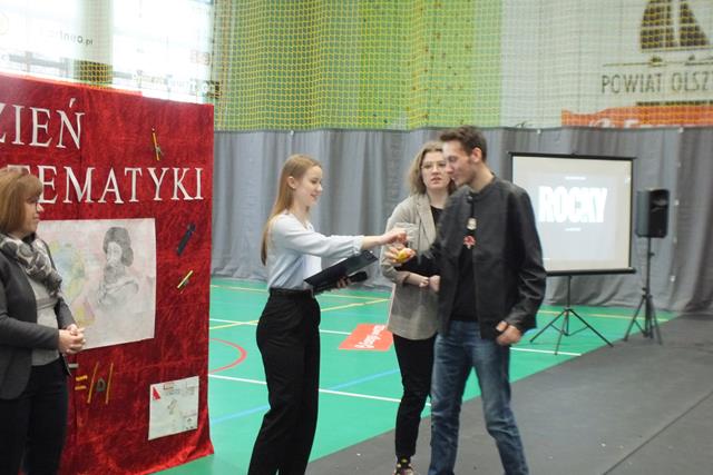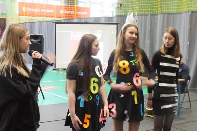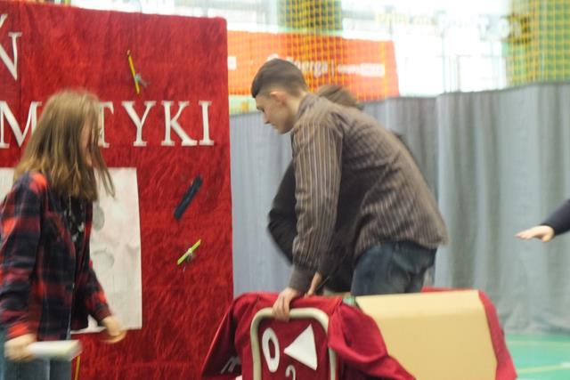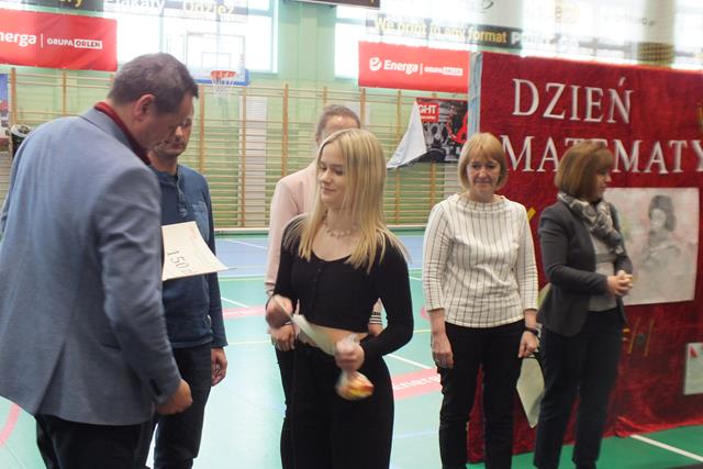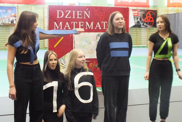 Matematyka jest najważniejszym przedmiotem- misie kolorowe!" Trudno się nie zgodzić z tym stwierdzeniem w takim dniu jak dziś! Nie, to nie jest Prima Aprilis, chociaż w kalendarzu jest data 1 kwietnia; dziś celebrowaliśmy Dzień Matematyki w Zespole Szkół. Oj działo się, działo! Młodzież klas pierwszych i drugich Liceum Ogólnokształcącego przygotowała się do udziału w swoistym festiwalu matematycznym, który wszedł już na stałe do imprez cyklicznych w naszej szkole. Pierwszym zadaniem młodzieży było zaprezentowanie utworu muzycznego, piosenki o walorach matematycznych- były występy a'capella, występy solowe, tercety i występy zespołowe. Publiczność była zachwycona występem ucznia klasy 2a Wojciecha Noska, który doborem repertuaru, wokalem i stylem nie dał praktycznie szans pozostałym wykonawcom. Po piosence przyszedł czas na film. Tu mogliśmy obejrzeć: zmagania "przypadkowych" uczniów i nauczycieli z problemami matematycznymi, poznać super właściwości spray'u powodującego napływ umiejętności i wiedzy, poznać niesamowity obszar zastosowania matematyki w naszym codziennym życiu, w literaturze, czy też dowiedzieć się, że matematyka jest lekiem ... - na wszystko.