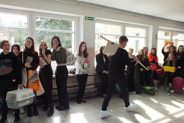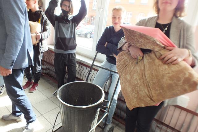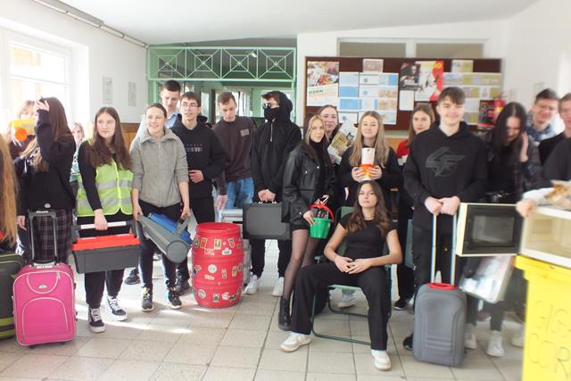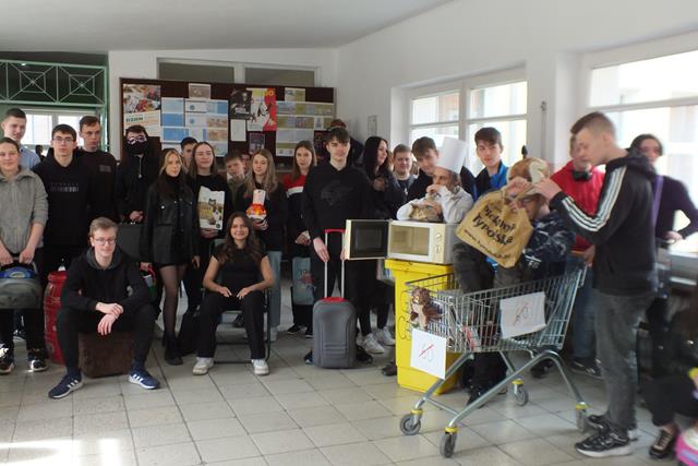 1 kwietnia w Zespole Szkół to nie tylko Dzień Matematyki, to także Dzień bez plecaka, który dziś obchodziliśmy z inicjatywy Samorządu Uczniowskiego. Sam pomysł pochodzi z USA i najczęściej wybierane są trzy daty w ciągu roku szkolnego - 21 marca, 1 kwietnia bądź 1 czerwca. Wbrew pozorom dzień bez plecaka nie oznacza braku przyniesienia książek i zeszytów - należy wykazać się kreatywnością i przybory szkolne trzeba przynieść w "zamienniku" plecaka. A wyobraźnia uczniów i ich pomysłowość zaskoczyła nie jednego obserwatora! Czegóż to nie było! Śmietniki, wózki sklepowe, pudełka tekturowe, bańki na mleko, obudowy do komputerów stacjonarnych, kuwety, transportery dla zwierząt, mikrofalówki, czy tradycyjne węzełki na kiju.... Zresztą zobaczycie sami w galerii zdjęć. Przyjrzyjcie się dokładnie, gdyż pomysł uznany za najciekawszy doczeka się nagrody.