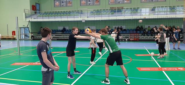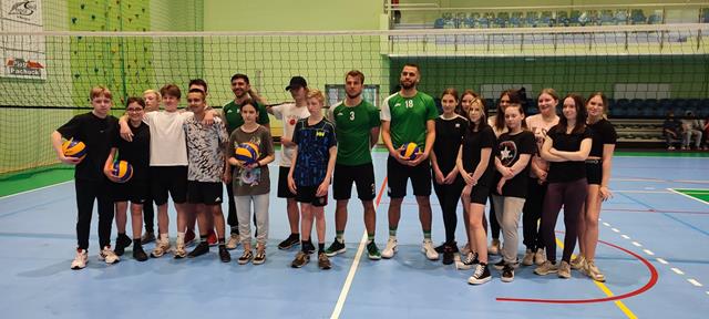 Po raz kolejny Zespół Szkół odwiedzili zawodnicy klubu AZS Indykpol Olsztyn. Czołowi siatkarze najlepszej drużyny Polski północno-wschodniej poprowadzili dziś lekcje wychowania fizycznego z młodzieżą. Najpierw tradycyjna rozgrzewka, a potem trening i to nie byle jaki - bo pod bacznym okiem zawodników. Taka alternatywna sportowa lekcja zachęciła sporą grupę uczniów do czynnego udziału w zajęciach i sprawdzenia swoich umiejętności. Poniżej - fotorelacja z treningu.