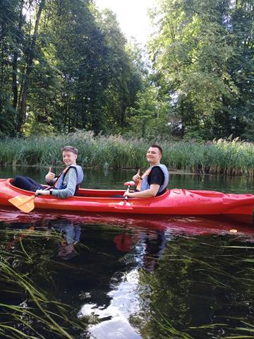 8 września, korzystając jeszcze z pięknej, ciepłej i słonecznej pogody klasy 3a i 4Tb Technikum wybrały się wraz z opiekunami na spływ kajakowy rzeką Krutynią. Trasa - jedna z najpiękniejszych na tym odcinku wiodła od miejscowości Krutyń do miejscowości Ukta. Na szlaku czekała obowiązkowa "przenoska" kajaków - młyn Krutyński Piecek oraz rodziny łabędzi z dorastającymi dziećmi. Były też czaple siwe, kaczki krzyżówki i mnóstwo ryb w przezroczystej toni spokojnej rzeki. Wszyscy wiosłowali dzielnie i szybko! Czas spędzony na łonie przyrody w Mazurskim Parku Krajobrazowym to udany pomysł na rekreację i integrację klas!