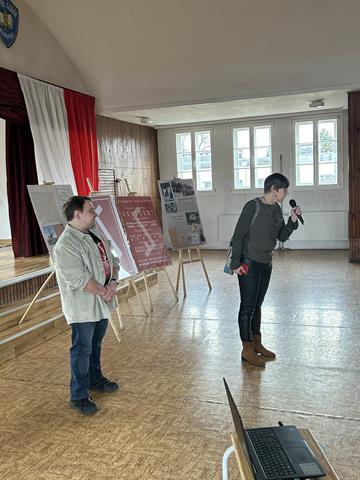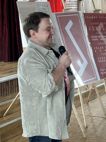 27 marca 2023 r. mieliśmy zaszczyt gościć w naszej szkole pana Piotra Łacha, prezesa Stowarzyszenia Semper Fidelis Polonia, który wygłosił prelekcję na temat Jeszcze Polska tutaj nie zginęła. Tytuł nawiązuje do wystawy poświęconej 100-leciu istnienia Związku Polaków w Niemczech, którą nasz gość przygotował Domu Pracy Twórczej Sorboma w ubiegłym roku. Uczniowie usłyszeli o trudnej historii ludności polskiej na Warmii, roli - jaką w budzeniu się polskości na tym terenie odegrały objawienia Matki Bożej w Gietrzwałdzie, mówiącej do dzieci po polsku. Pan Piotr Łach opowiedział o powstaniu Związku Polaków w Niemczech i wyjaśnił znaczenie symboliki Rodła - znaku tejże organizacji, przybliżył sylwetki działaczy polskich na Warmii ( szczególnie związanych z Biskupcem i jego okolicami ). Ciekawostką jest fakt, że na cmentarzu w Biskupcu spoczywa 10 działaczy Związku zasłużonych w walce o polskość Warmii. Zasługą pana Piotra jest umieszczenie na grobach znaku Rodła dla upamiętnienia tych osób. Na koniec spotkania w postawie stojącej wysłuchaliśmy fragmentu oryginalnego nagrania z obrad I Kongresu Związku Polaków w Niemczech w 1938 r., na którym ogłoszono Pięć Prawd Polaków.