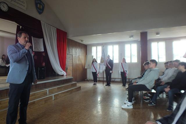 Z okazji zbliżającej się 232 rocznicy uchwalenia Konstytucji 3 Maja w naszej szkole odbył się uroczysty apel poświęcony temu wydarzeniu. Uznawana za pierwszą w Europie i drugą na świecie nowoczesną konstytucję - uchwalona 3 maja 1791 roku na Sejmie Czteroletnim ustawa regulująca ustrój prawny Rzeczypospolitej Obojga Narodów była pierwszą w Europie i drugą na świecie nowoczesną konstytucją. Wprowadzała w Rzeczypospolitej ustrój monarchii konstytucyjnej – zachowywała stanową strukturę społeczeństwa, ale otwierała perspektywy dalszych przekształceń systemu państwowego. Na jej podstawie przyjęto monteskiuszowski podział władz na prawodawczą, wykonawczą i sądowniczą, a także zniesiono m.in. liberum veto, konfederacje i wolną elekcję. Choć Konstytucja 3 maja obowiązywała jedynie przez 14 miesięcy, była wielkim osiągnięciem narodu polskiego chcącego zachować niezależność państwową oraz zapewnić możliwość rozwoju gospodarczego i politycznego kraju. Pamiętając o historii naszego państwa i utracie na 123 lata niepodległości doceniamy jak ogromną wartość stanowi niepodległość i niezależność państwowa.