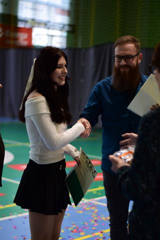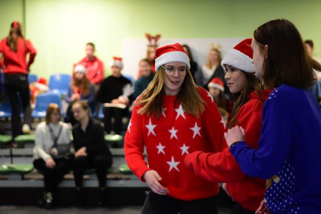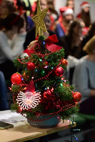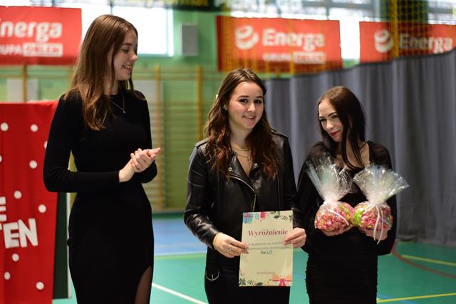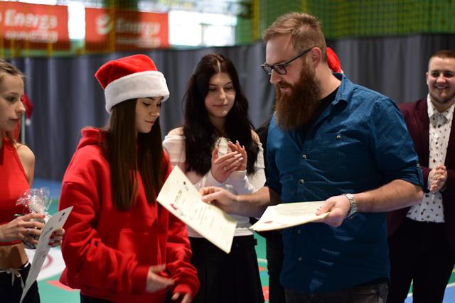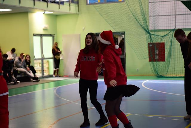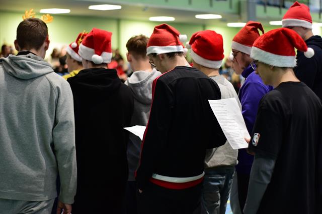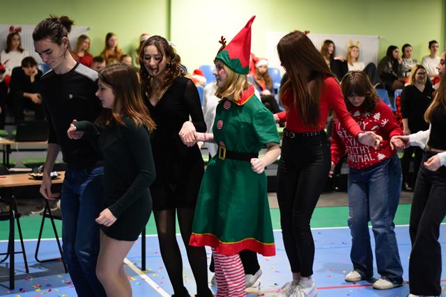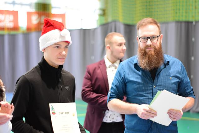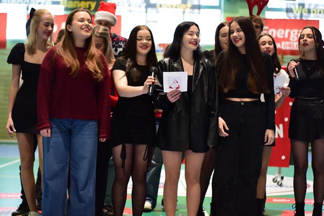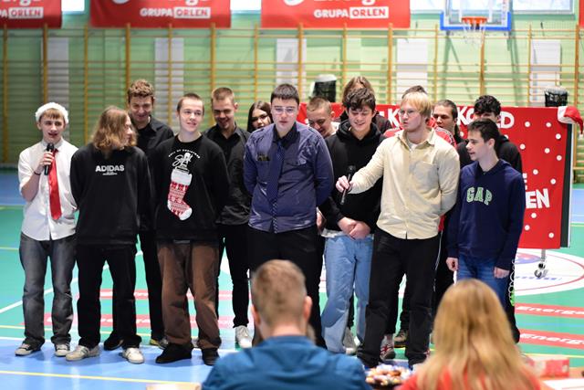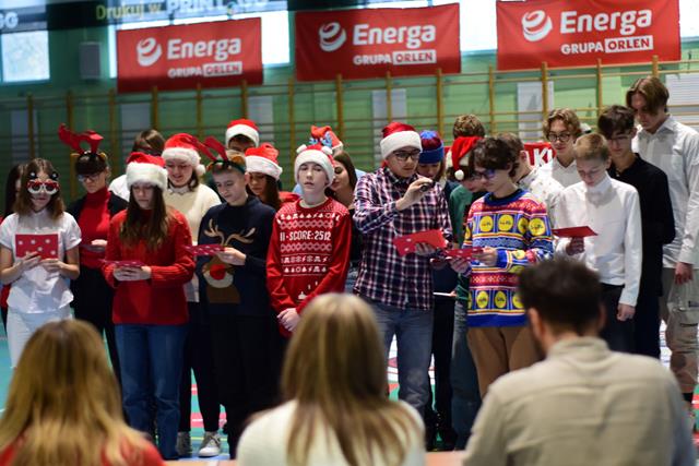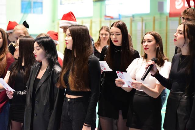 Od wielu lat w ostatni dzień nauki przed świętami Bożego Narodzenia w Zespole Szkół odbywa się konkurs piosenki świątecznej w języku obcym. To już szkolna tradycja, kiedy w szkole słychać wesołe dźwięki w języku angielskim. rosyjskim i niemieckim. Uczestnicy konkursu prześcigają się w pomysłach na strój świąteczny, gadżety świąteczne oraz inne efekty specjalne. Ma się wrażenie, że na szkolnej hali odbywa się zjazd świętych Mikołajów, śnieżynek, elfów, reniferów. Każdy chce wypaść jak najlepiej i jury docenia te starania. Niestety nie mogą wygrać wszyscy - toteż komisja oceniająca ma nie lada problem. Po burzliwych obradach i skrzętnym przeliczeniu punktacji wygrała w tym roku klasa 2b LO, drugie miejsce zajęła klasa 4a LO, zaś trzecie miejsce na podium przypadło klasie 3b LO. Konkurs cieszy się co roku dużą popularnością i prawie wszystkie klasy biorą w nim udział. Chwile z piosenką świąteczną umilają nam czas i wprawiają w bożonarodzeniowy nastrój. Do usłyszenia za rok!