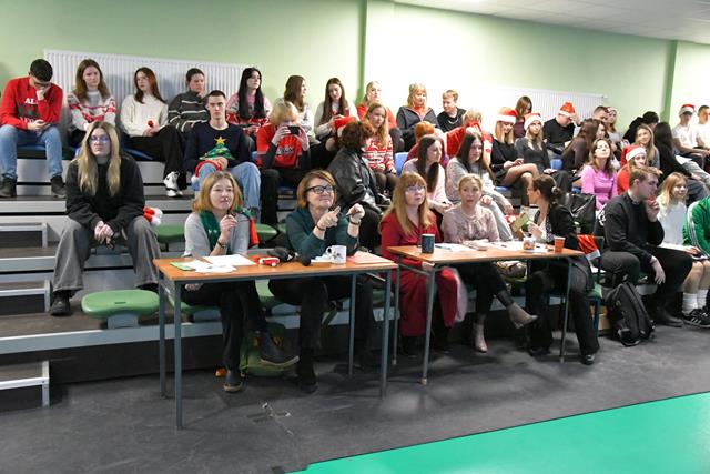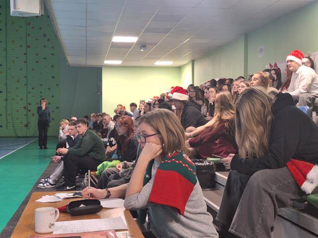 W naszej szkole odbył się Szkolny Konkurs Piosenki Świątecznej w Językach Obcych, który na stałe wpisał się w kalendarz szkolnych wydarzeń i jak co roku wprowadził całą społeczność szkolną w wyjątkowy, świąteczny nastrój. W konkursie udział wzięło 14 klas, reprezentujących liceum ogólnokształcące, technikum oraz szkołę branżową. Uczniowie zaprezentowali piosenki świąteczne w języku angielskim, niemieckim i rosyjskim, udowadniając, że muzyka jest uniwersalnym językiem, który łączy ludzi ponad granicami.
