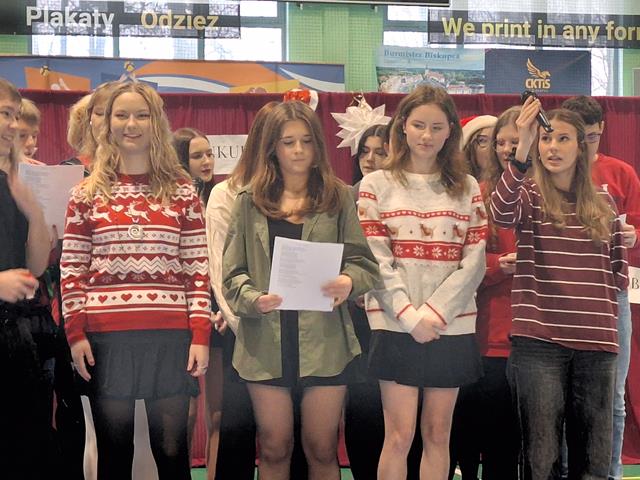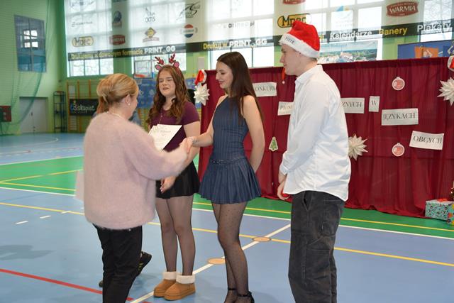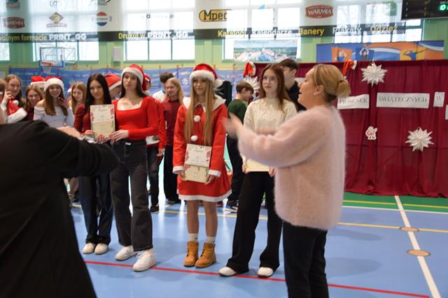 Po raz pierwszy w historii konkursu wydarzenie otworzył także występ Szanownego Grona Pedagogicznego, który spotkał się z ogromnym entuzjazmem i gromkimi brawami. Jury oceniało występy, biorąc pod uwagę poprawność językową, linię melodyczną, oprawę sceniczną oraz zaangażowanie całych klas. Po naradach wyłoniono zwycięzców: I miejsce zajęła klasa 1b LO, II miejsce - klasa 3c LO , III miejsce -klasa 4b LO. Dodatkowo jury przyznało wyróżnienia za piękny śpiew i wyjątkowy występ, które otrzymały klasy:1B szkoły branżowej,3b LO,4a LO, 4d LO. Wszyscy uczestnicy konkursu otrzymali pamiątkowe dyplomy, a laureaci bony pieniężne ufundowane przez Radę Rodziców. Konkurs dostarczył wielu emocji, radości i wzruszeń, a przede wszystkim pozwolił nam wspólnie poczuć magię zbliżających się Świąt Bożego Narodzenia. Serdecznie gratulujemy zwycięzcom i dziękujemy wszystkim za zaangażowanie. Już teraz z niecierpliwością czekamy na kolejną edycję konkursu!