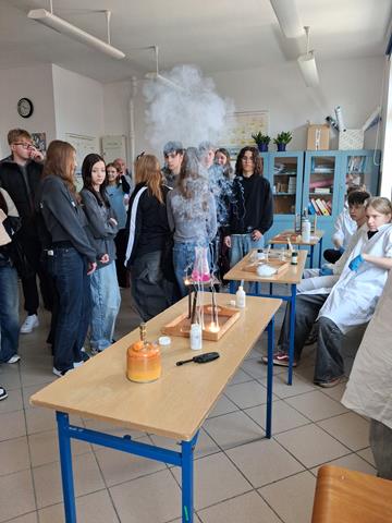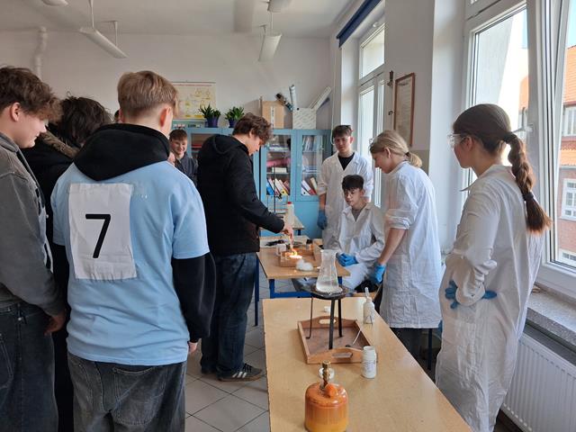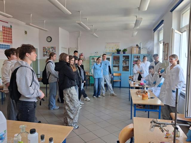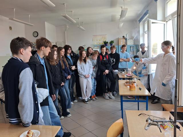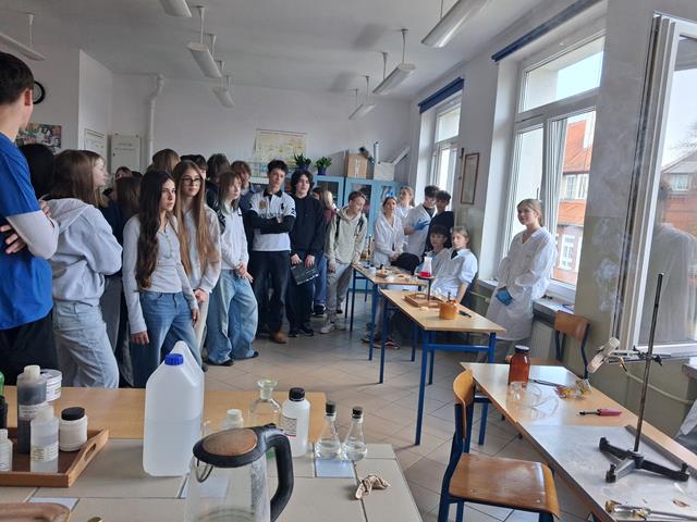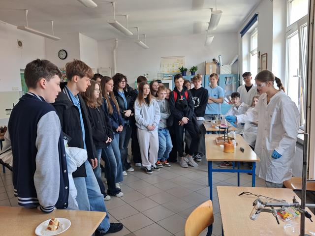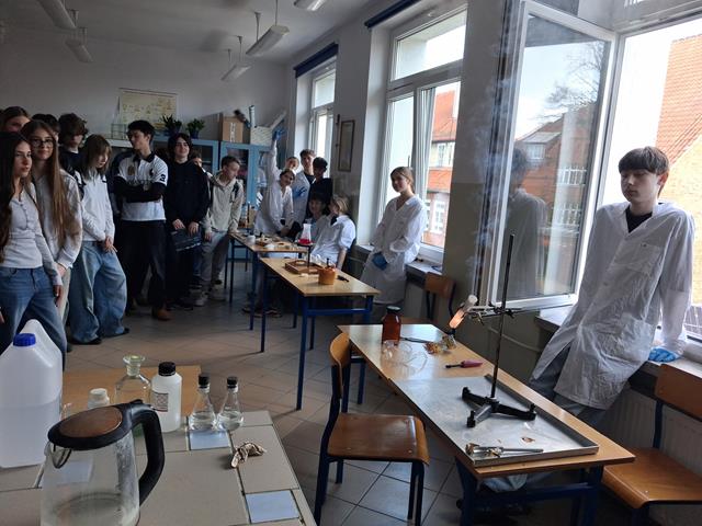 Dzień Otwarty w Zespole Szkół z nami. Naszymi gośćmi byli uczniowie klas ósmych szkół podstawowych w Biskupcu oraz z terenu naszej gminy. Muzycznie przywitał wszystkich uzdolniony wokalnie Filip, który wykonał utwór „Szklanka wody”. Następnie słowo do młodzieży skierował dyrektor – Krzysztof Janczara przedstawiając walory naszej szkoły oraz ofertę edukacyjną przygotowaną na rok szkolny 2026/2027,zaś przewodniczący Samorządu Uczniowskiego – Arek w gorących słowach zachęcił przybyłych do skorzystania z nauki w murach naszej przyjaznej szkoły, która oferuje osobisty rozwój i gdzie nie ma miejsca na nudę! To szkoła, gdzie każdy znajdzie coś dla siebie… W krótkim programie artystycznym zaprezentowali się: Maciek z Dominiką (taniec), reprezentacja cheerleaderek (Lena, Patrycja, Weronika), kickboxing (Basia i Patrycja) oraz sportowa drużyna reprezentacyjna piłki siatkowej. Co przygotowaliśmy dla naszych gości? Otóż był to Festiwal Pasji (uczniowie prezentowali swoje hobby – a było co oglądać!), Festiwal Nauki (królowała biologia, chemia i fizyka), była próba swoich umiejętności w strzelaniu (Strzelnica Wirtualna), można było sprawdzić się w szkolnej siłowni, pobawić układami elektrycznymi, czy stoczyć pojedynek w grę komputerową. Mamy nadzieję, że spotkamy się ponownie – tym razem we wrześniu! Do zobaczenia!