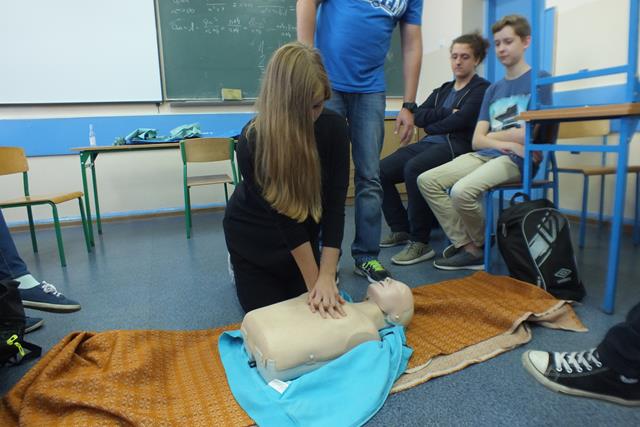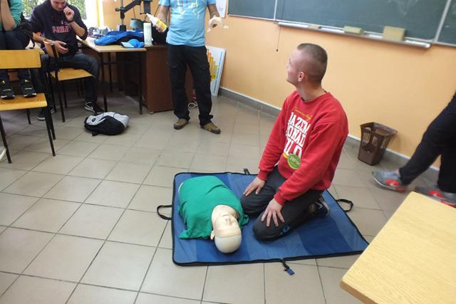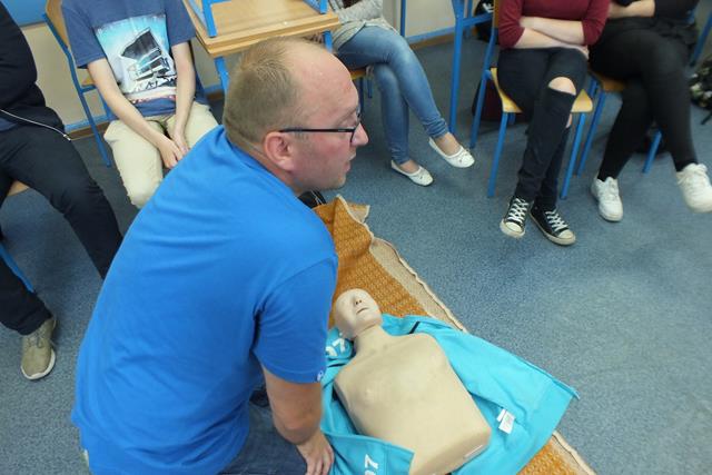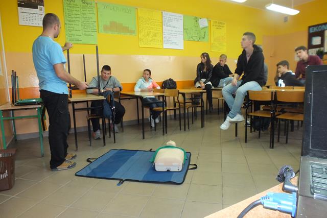 W ramach projektu realizowanego w Zespole Szkół "Wiem - umiem -stosuję", zgodnie z harmonogramem w miesiącu wrześniu rozpoczęliśmy cykl ćwiczeń z udzielania pierwszej pomocy. Młodzież ma okazję zapoznać się z prawidłowym przeprowadzeniem resuscytacji krążeniowo- oddechowej oraz czynnie wziąć udział w ćwiczeniach praktycznych przeprowadzanych przez nauczycieli edukacji dla bezpieczeństwa w naszej szkole.