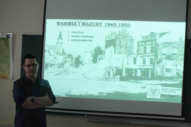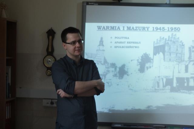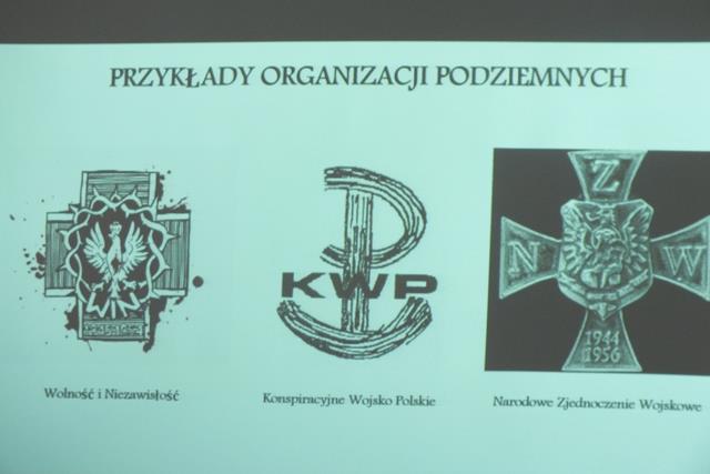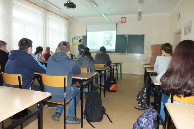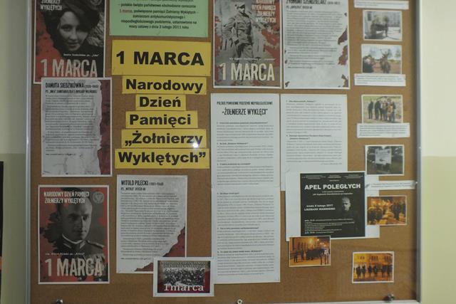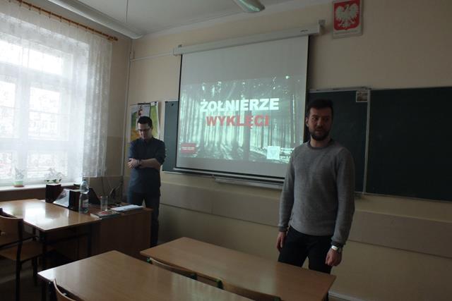 W dniu 3 lutego 2011 roku Sejm Rzeczypospolitej Polskiej podjął Uchwałę w celu upamiętnienia żołnierzy antykomunistycznegoi niepodległościowego podziemia ustanawiając 1 marca polskie święto państwowe- Narodowy Dzień Pamięci "Żołnierzy Wyklętych". Jest to forma pamięci o wszystkichpoległych, pomordowanych, więzionych i prześladowanych walczących o wolną i niepodległą Polskę. Zbliżająca się data okolicznościowego święta stała się okazją do poszerzenia oferty edukacyjnej dla młodzieży Zespołu Szkół o prelekcje prowadzone przez przedstawiciela delegatury Instytutu Pamięci Narodowej Delegatury w Olsztynie. 21 lutego odwiedził nas pan Dawid Zagził, który zaprezentował ciekawe wykłady z historii powojennej życia politycznego województwa olsztyńskiego w latach 1945-1950, oraz przybliżył genezę organizacji niepodległościowych i jej członków. Poznaliśmy w zarysie sylwetki Danuty Siedzikówny pseud, Inka, Zygmunta Szendzielarza pseud. Łupaszka, Augusta Emila Fieldorfa pseud. Nil, Mieczysława Dziemieszkiewicza pseud. Roj i innych. W spotkaniu uczestniczyły klasy pierwsze Liceum Ogólnokształcącego. Godzina lekcyjna nie zdołała wyczerpać poruszanych zagadnień pozostawiając inspirację do kolejnych spotkań.