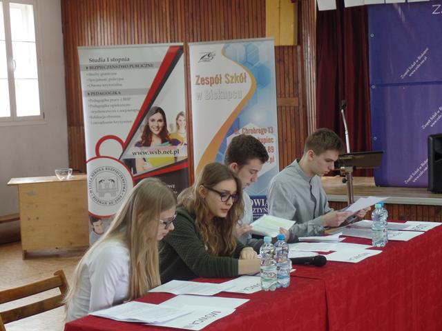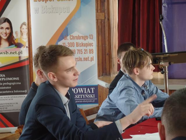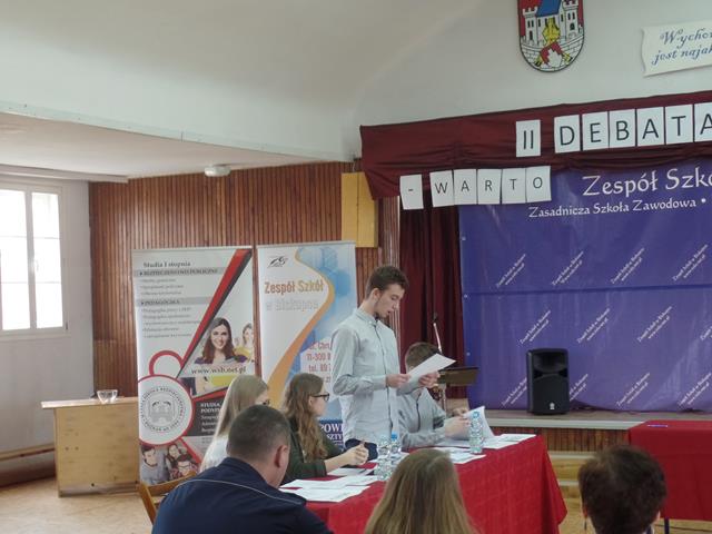 W słowne szranki na argumenty stanęło 6 drużyn: Zespół Szkół w Górowie Iławeckim,Zespół Szkół nr2 im. Elizy Orzeszkowej w Bartoszycach, Zespół Szkół Ogólnokształcących w Wydminach, Zespół Szkół im. Marii Curie-Skłodowskiej w Kętrzynie, Katolickie Liceum Ogólnokształcące w Biskupcu oraz Zespół Szkół w Biskupcu. Zostały wylosowane następujące tematy debaty: 1) Czy likwidacja gimnazjów to dobra zmiana? 2) Media społecznościowe nowy wymiar komunikacji międzyludzkiej czy uzależnienie? 3) Czy w Polsce należy zliberalizować przepisy dostępu do broni palnej? Debata jest doskonałą formą rozwijania warsztatu sztuki przemawiania i przekonywania o słuszności swoich argumentów. Trudność polega na tym,że przemawiający często musi bronić tezy, z którą sam się nie zgadza, dobierając odpowiednie argumenty w celu przekonania strony przeciwnej. Należy pamiętać o tym, żeby wiedzieć co się mówi, a nie mówić co się wie....