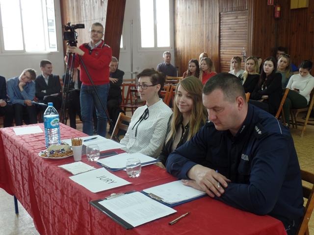 Całości debaty uwaznie przysłuchiwało się i oceniało jury w składzie: Agnieszka Walentynowicz ( Wydział Nauk Społecznych Wyższej Szkoły Bezpieczeństwa z Poznania z siedzibą w Bartoszycach), Marzena Dobosz i Małgorzata Kępka ( Wydział Nauk Społecznych Wyższej Szkoły Bezpieczeństwa z Poznania z siedzibą w Giżycku), aspirant sztabowy Tomasz Pijewski (Komisariat Policji w Biskupcu), starszy aspirant Tomasz Woliński (Komenda Miejska Państwowej Straży Pożarnej w Biskupcu), Narcyz Klik (radny Rady Miejskiej w Biskupcu).