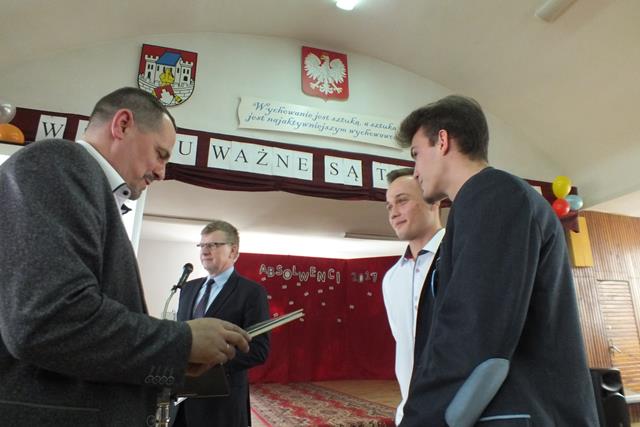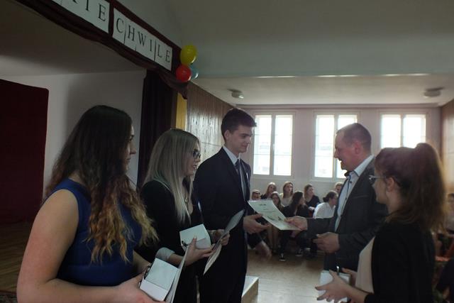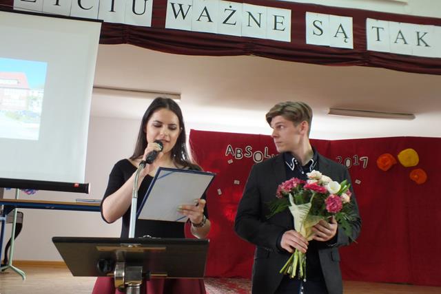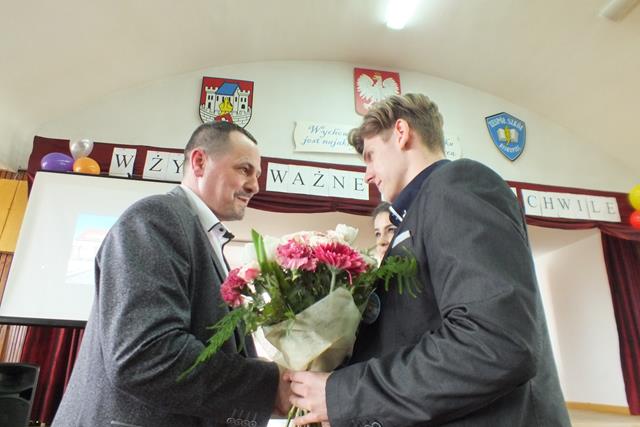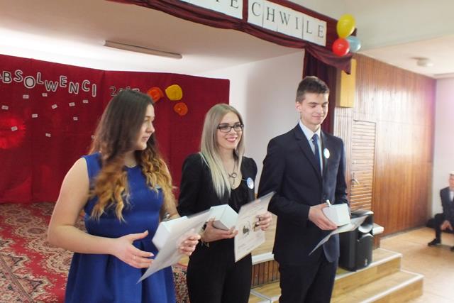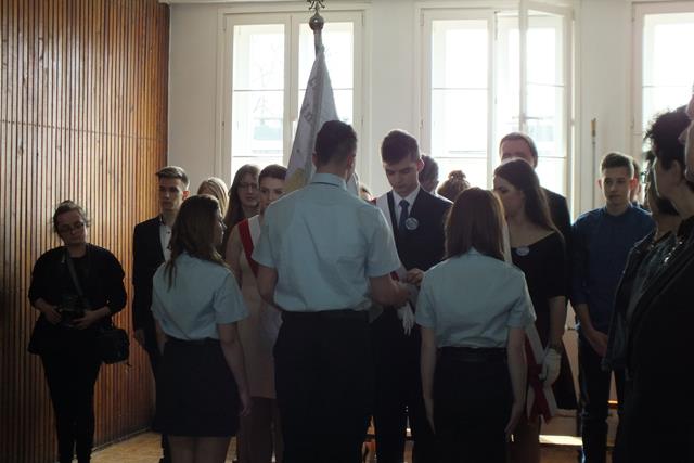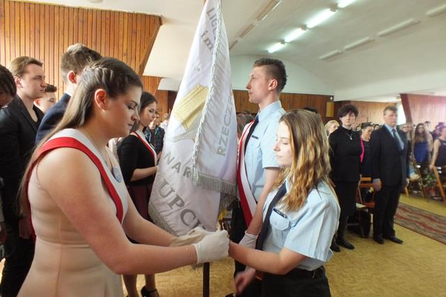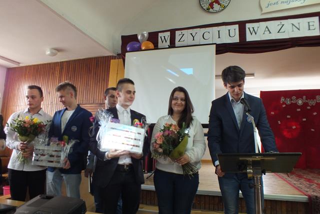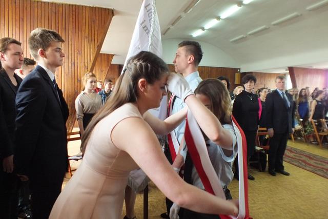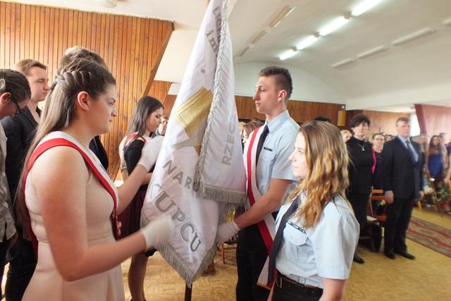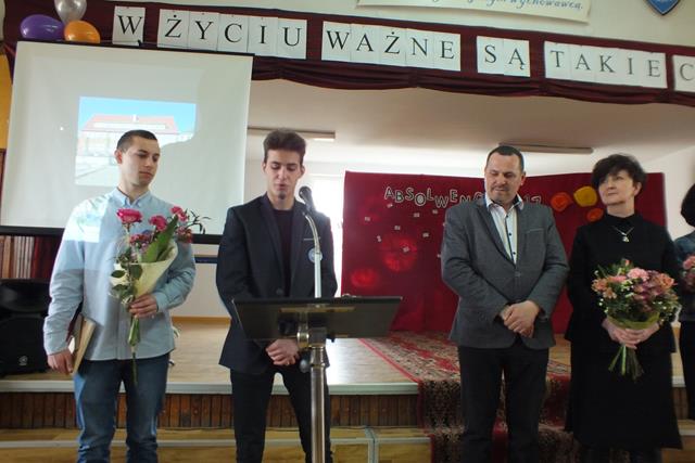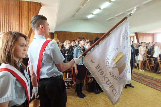 Nadchodzi taki czas w życiu szkolnym ucznia, kiedy kolejny etap edukacyjny dobiega końca. W życiu ważne są takie chwile... chwile podziękowań, wzruszeń i pożegnań... Czas podsumowania dotychczasowego wysiłku, wspólnie spędzonego czasu i doświadczeń. Dzisiaj, 24 kwietnia żegnaliśmy uczniów kończących swoją edukację w Zespole Szkół w Biskupcu - klasę 3a i 3b Liceum oraz klasę 4 Technikum. Starsi koledzy przekazali swoim młodszym następcom Sztandar Szkolny - to teraz na ich barkach będzie spoczywał honor szkoły. Dyrektor Krzysztof Janczara wygłosił okolicznościowe przemówienie, nie zabrakło również "listy obecności" wyczytanej po raz ostatni przez wychowawców: Grzegorza Wierzbowskiego, Zofię Łukaszuk-Drążek, Iwonę Karmazyn. Były kwiaty, wyrazy wdzięczności, uściski i łzy w oczach.....