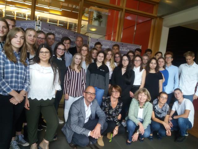 22.09.18 ponownie spotkaliśmy się z naszymi przyjaciółmi z projektu Erasmus +. Było bardziej niekonwencjonalnie niż zwykle, bowiem nie zawsze nadarza się gościć kogoś w obcym mieście już o 5.30 rano. Długa podróż, zmęczenie i naprawdę kiepska pogoda dały się nam we znaki, toteż szybko odwiedziliśmy nasz tymczasowy dom - Jugendherberge. Następnego dnia, od samego rana, zaczęliśmy przygotowywania do naszej długo oczekiwanej wystawy. Czas naglił, miała się przecież odbyć już w następny piątek! Przez kolejnych kilka dni pracowaliśmy nad nią bez wytchnienia. Poznaliśmy tajniki programu Photoshop, trudności pisania na niemieckich klawiaturach (zmieniona kolejność liter może być nieco kłopotliwa), a przy tym spędziliśmy naprawdę miły czas razem. Kiedy wszystko było już zapięte na ostatni guzik, mogliśmy odrobinę odetchnąć. Wycieczka do Bremy okazała się świetnym wynagrodzeniem za trudy naszego wysiłku. Efekty naszej prawie rocznej pracy zobaczyliśmy w piątek, w ratuszu w Bramsche. Nie obyło się bez wzruszających przemówień , gratulacji, podziękowań i kieliszka szampana oraz soku pomarańczowego! Nie wszyscy z nas są w końcu pełnoletni. Następnym razem zobaczymy się w styczniu, u nas. Nachodzi czas, aby wystawę mógł zobaczyć każdy z was.