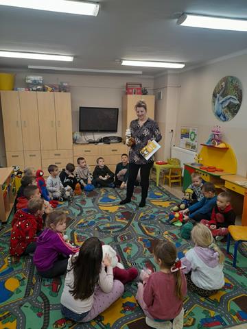 25 listopada z okazji Światowego Dnia pluszowego Misia, wybrałam się do SP nr 2 w Biskupcu. Wraz z "bibliotecznym misiem podróżnikiem", odwiedziłam grupę "0". Dzieci poznały historię pluszaka Mata, misia optymisty, podróżnika, obieżyświata, który stykał się z bogactwem i biedą. To główny bohater książki Agnieszki Suchowierskiej, pt.: "Mat i świat". odbyły się także ciekawe wspólne zabawy ruchowo-taneczne z misiami. Dzieci, pracując w grupach, ułożyły wyrazy z rozsypanek literowych, z których powstało zdanie podsumowujące ciekawe zajęcia: "Maskotka - pluszowy miś - to przyjaciel dzieci." Dziękuję dzieciom i paniom, za miłe przyjęcie i sympatyczne spotkanie.