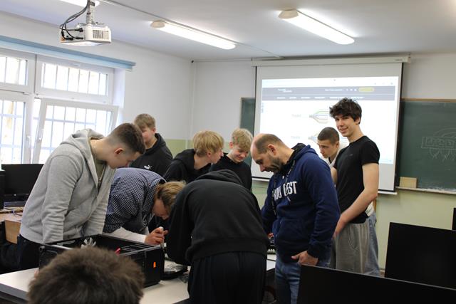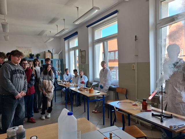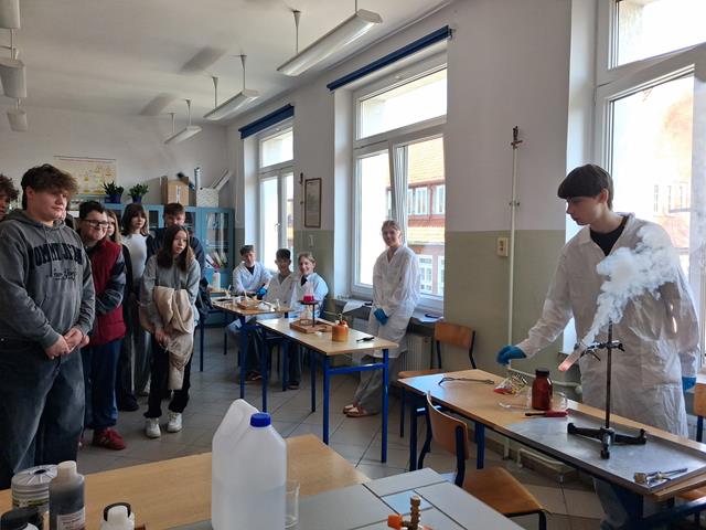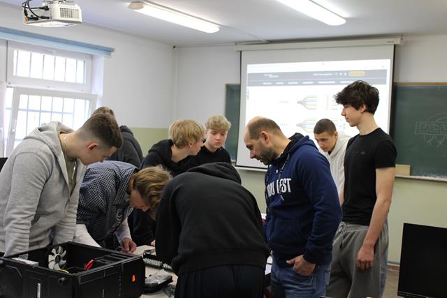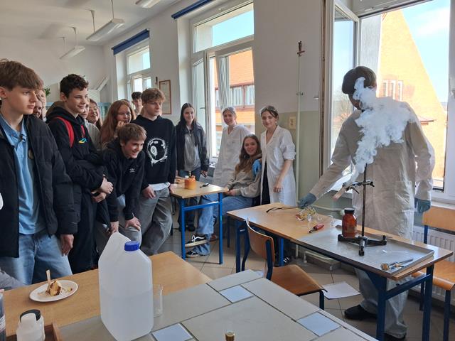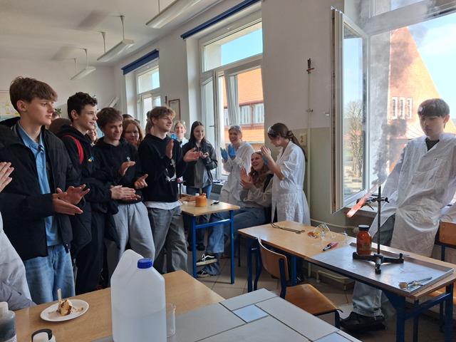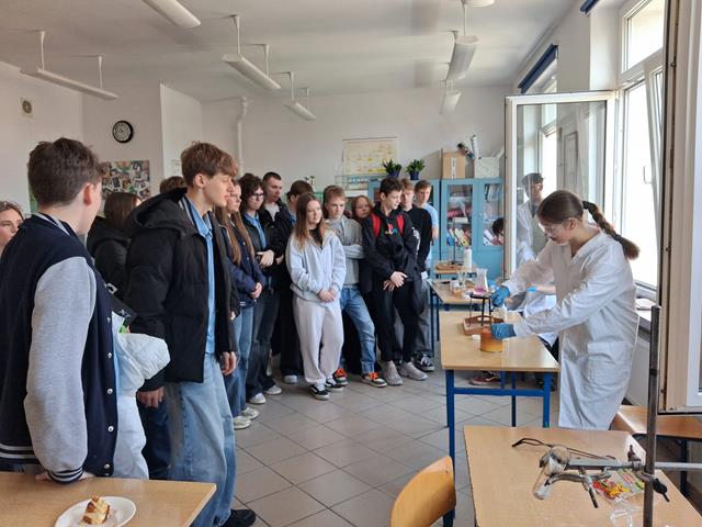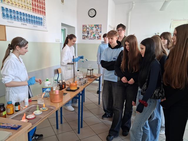 Dzień Otwarty w Zespole Szkół z nami. Naszymi gośćmi byli uczniowie klas ósmych szkół podstawowych w Biskupcu oraz z terenu naszej gminy. Muzycznie przywitał wszystkich uzdolniony wokalnie Filip, który wykonał utwór „Szklanka wody”. Następnie słowo do młodzieży skierował dyrektor – Krzysztof Janczara przedstawiając walory naszej szkoły oraz ofertę edukacyjną przygotowaną na rok szkolny 2026/2027,zaś przewodniczący Samorządu Uczniowskiego – Arek w gorących słowach zachęcił przybyłych do skorzystania z nauki w murach naszej przyjaznej szkoły, która oferuje osobisty rozwój i gdzie nie ma miejsca na nudę! To szkoła, gdzie każdy znajdzie coś dla siebie… W krótkim programie artystycznym zaprezentowali się: Maciek z Dominiką (taniec), reprezentacja cheerleaderek (Lena, Patrycja, Weronika), kickboxing (Basia i Patrycja) oraz sportowa drużyna reprezentacyjna piłki siatkowej. Co przygotowaliśmy dla naszych gości? Otóż był to Festiwal Pasji (uczniowie prezentowali swoje hobby – a było co oglądać!), Festiwal Nauki (królowała biologia, chemia i fizyka), była próba swoich umiejętności w strzelaniu (Strzelnica Wirtualna), można było sprawdzić się w szkolnej siłowni, pobawić układami elektrycznymi, czy stoczyć pojedynek w grę komputerową. Mamy nadzieję, że spotkamy się ponownie – tym razem we wrześniu! Do zobaczenia!