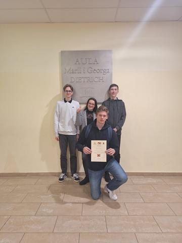 Uczniowie klasy 3c LO w składzie: Jakub Radomski, Bartłomiej Świder oraz Antoni Kwiecień, reprezentujący nasz Zespół Szkół w Biskupcu, zajęli III miejsce w wojewódzkim konkursie wiedzy o Austrii „Turbolandeskunde”. Konkurs odbył się na Uniwersytecie Warmińsko-Mazurskim, na Wydziale Humanistycznym w Olsztynie. Nasi uczniowie zaprezentowali bardzo wysoki poziom wiedzy, rywalizując z najlepszymi szkołami w województwie. Zmagali się z pytaniami dotyczącymi geografii, historii, polityki, sportu oraz kultury krajów niemieckiego obszaru językowego. Na koniec pokazało się trochę stresu, sporo emocji i naprawdę niewiele zabrakło do wyższego miejsca. O końcowej klasyfikacji zdecydował zaledwie jeden punkt i tak przed nami znalazło się II Liceum Ogólnokształcące im. Konstantego Ildefonsa Gałczyńskiego w Olsztynie zajmując I miejsce oraz Zespół Szkół Ogólnokształcących w Węgorzewie - II miejsce. W rywalizacji udział wzięło 11 szkół z województwa, co podkreśla wysoki poziom konkursu i dużą konkurencję. Dziękujemy jury za miłą atmosferę i do zobaczenia może już za rok!